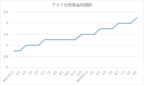 2018年9月現在 アメリカの政策金利は2.25%です。