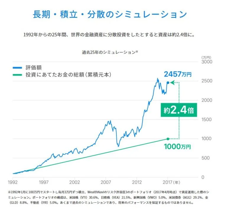 1992年から25年間のシミュレーションでは約2.4倍となったという試算もでており、今後も注目度の高い資産運用です。