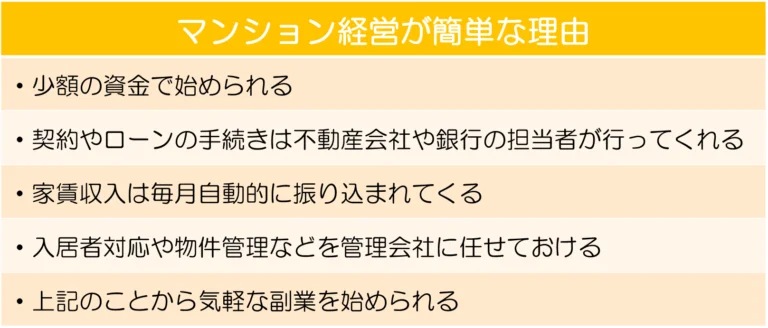 さらに、マンション経営の何が簡単なのか具体的に見てみましょう。