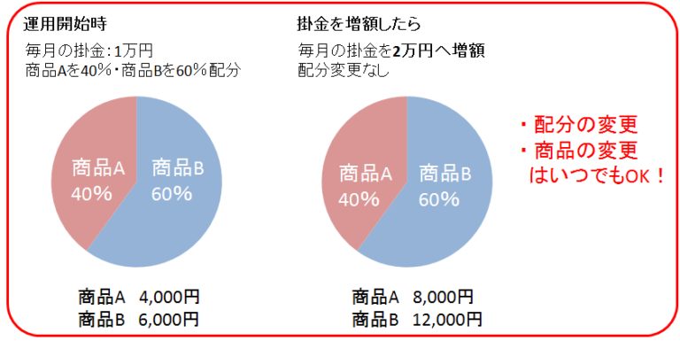 配分の変更はいつでも可能で、他の商品への変更も可能です。