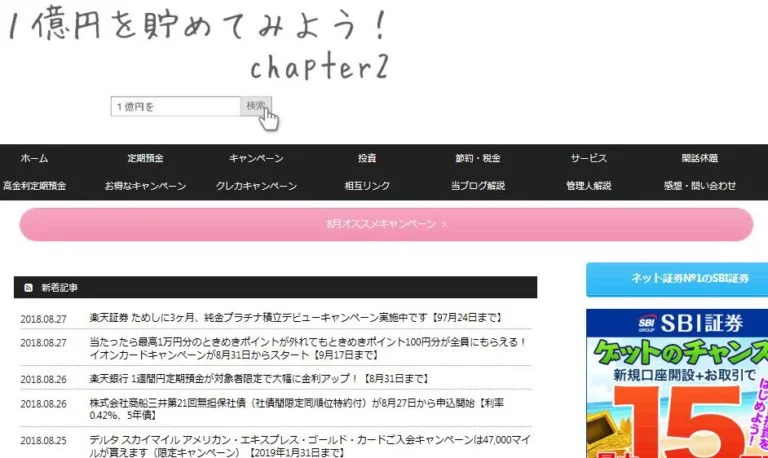 管理人のすぱいくさんのブログ「1億円を貯めてみよう!chapter2」では、お得な定期預金などの情報にズバ抜けて詳しく書かれています。