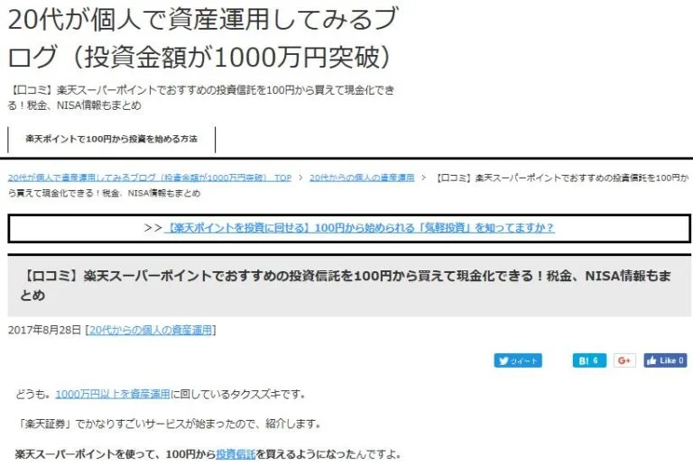 このブログでは20代から資産運用を始め、投資金額が1000万円以上になったタクスズキさんが投資信託・FX・仮想通貨・ロボアドバイザー等、実践したものを丁寧に解説してくれます。