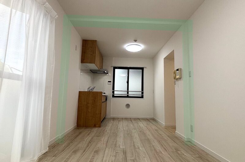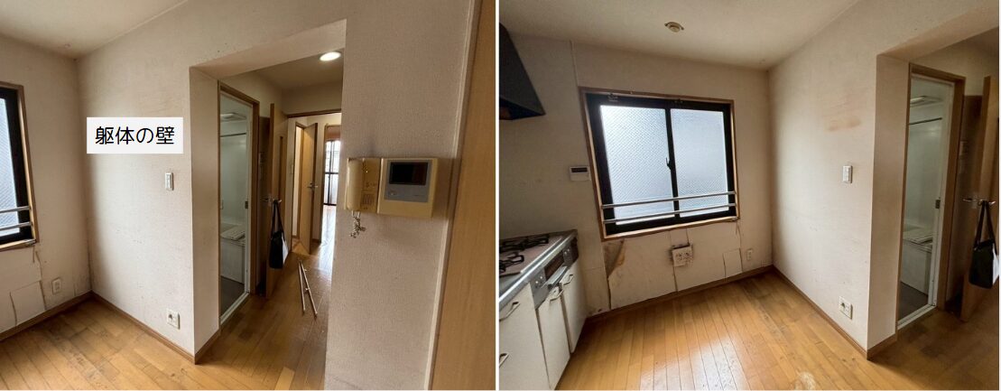 LDKの入口壁は躯体のため、解体ができず、扉の幅を十分に確保できないため、設置が難しい状況です。