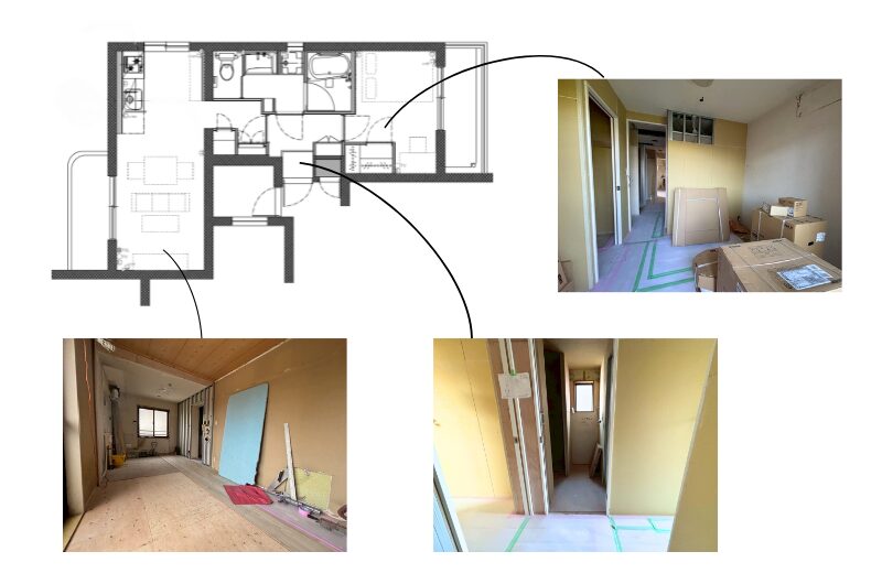 この完全に2つに分かれた空間のリノベーションは、私自身にとって初めての経験でした。これまでは整った形の物件ばかりだったため、新たに考えるべき点がありました。