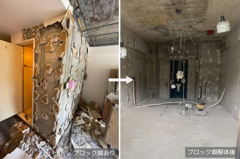 ユニットバスの周りには一部にブロック塀があることを予測していましたが、実際にはユニットバスを囲うように全面に設置されており、予想外の状況でした。そのため、追加の作業時間が必要となりました。