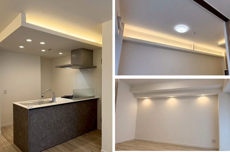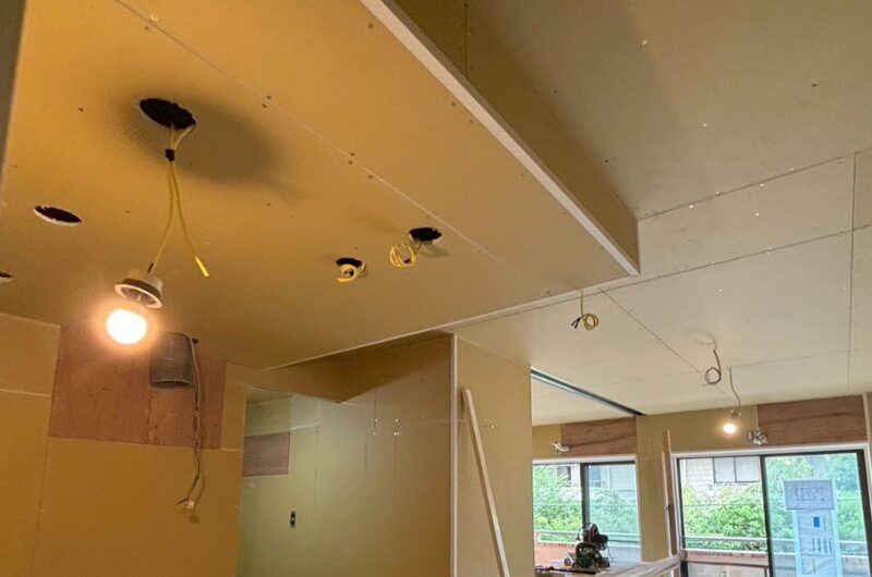 キッチンおよびLDK・居室に新たな照明を設置するための天井板を設けました。