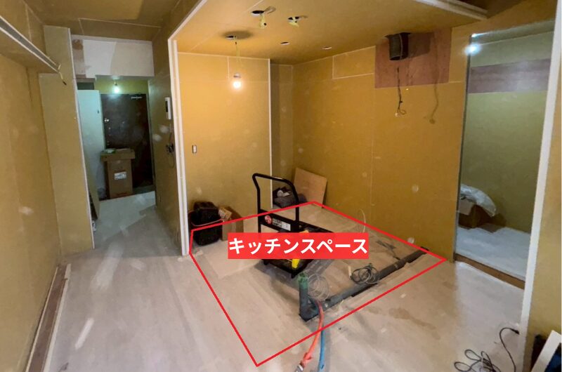 この物件では、水回りに大きな段差があり、これがリノベーションにおける大きな課題となります。配管を通す必要があるため、完全にフラットな床にはできませんが、工事により段差をできるだけ縮めるよう対応していきます。