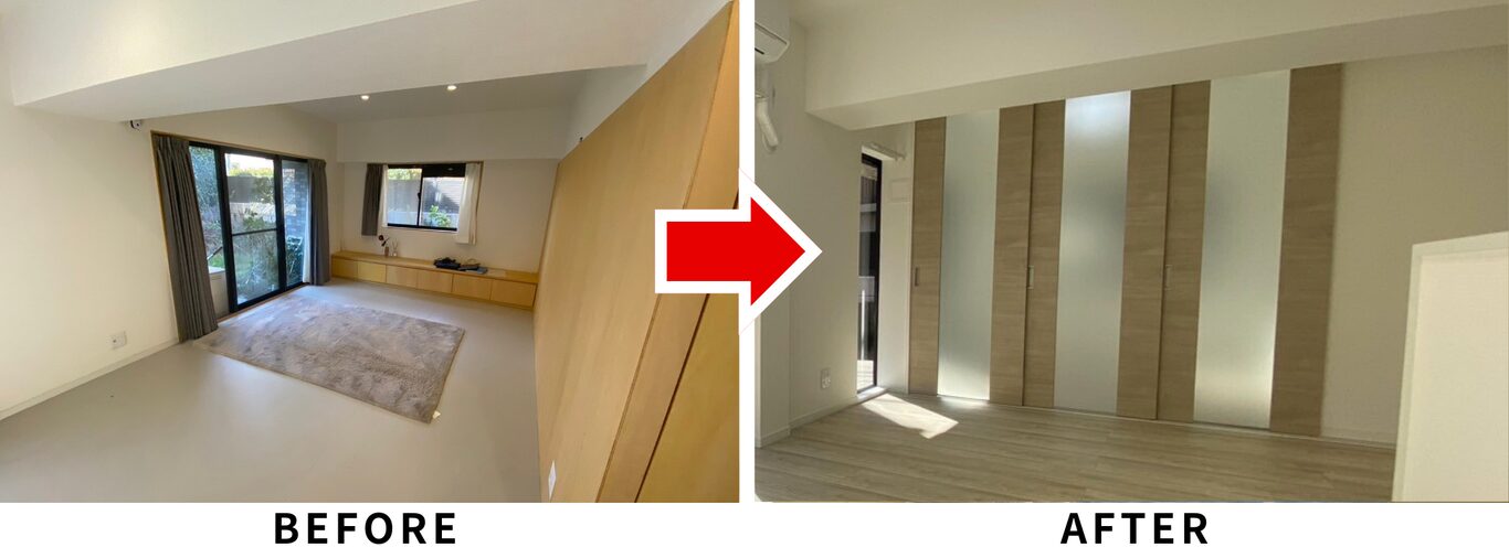 今回は「1居室を3居室にしながらも開放感を保つ」という難しさがありましたが、どちらの要望も満たすプランを作り施工完了をさせ、家族など大人数でもくつろげる空間を実現しました。