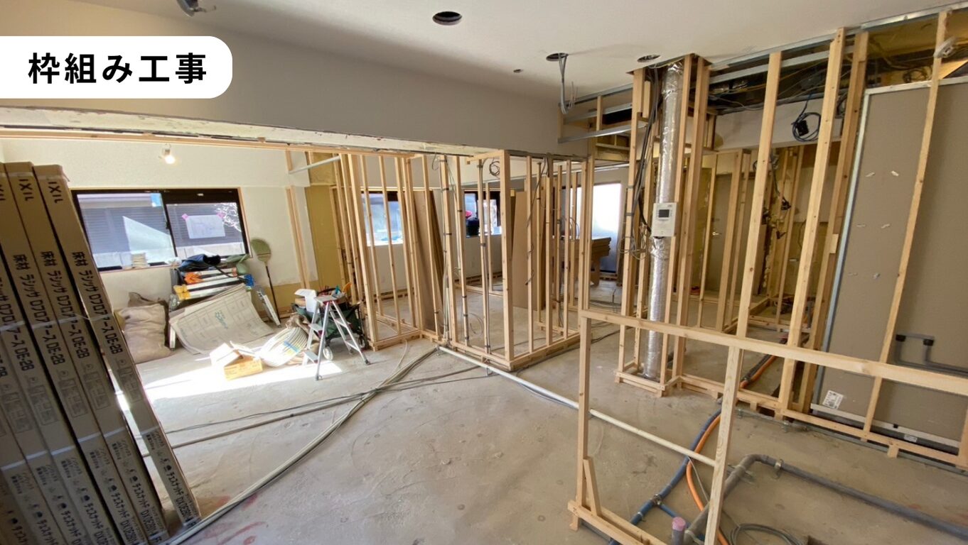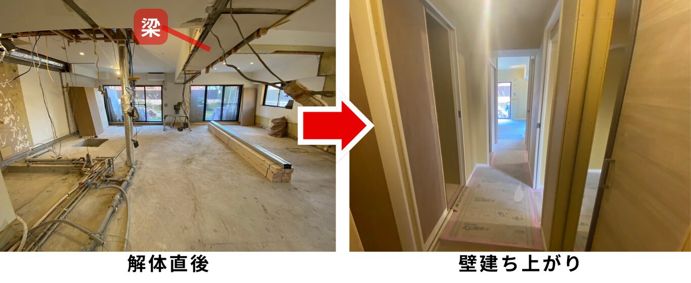 解体から壁が立ち上がると、間取りの完成イメージができるようになってきました。