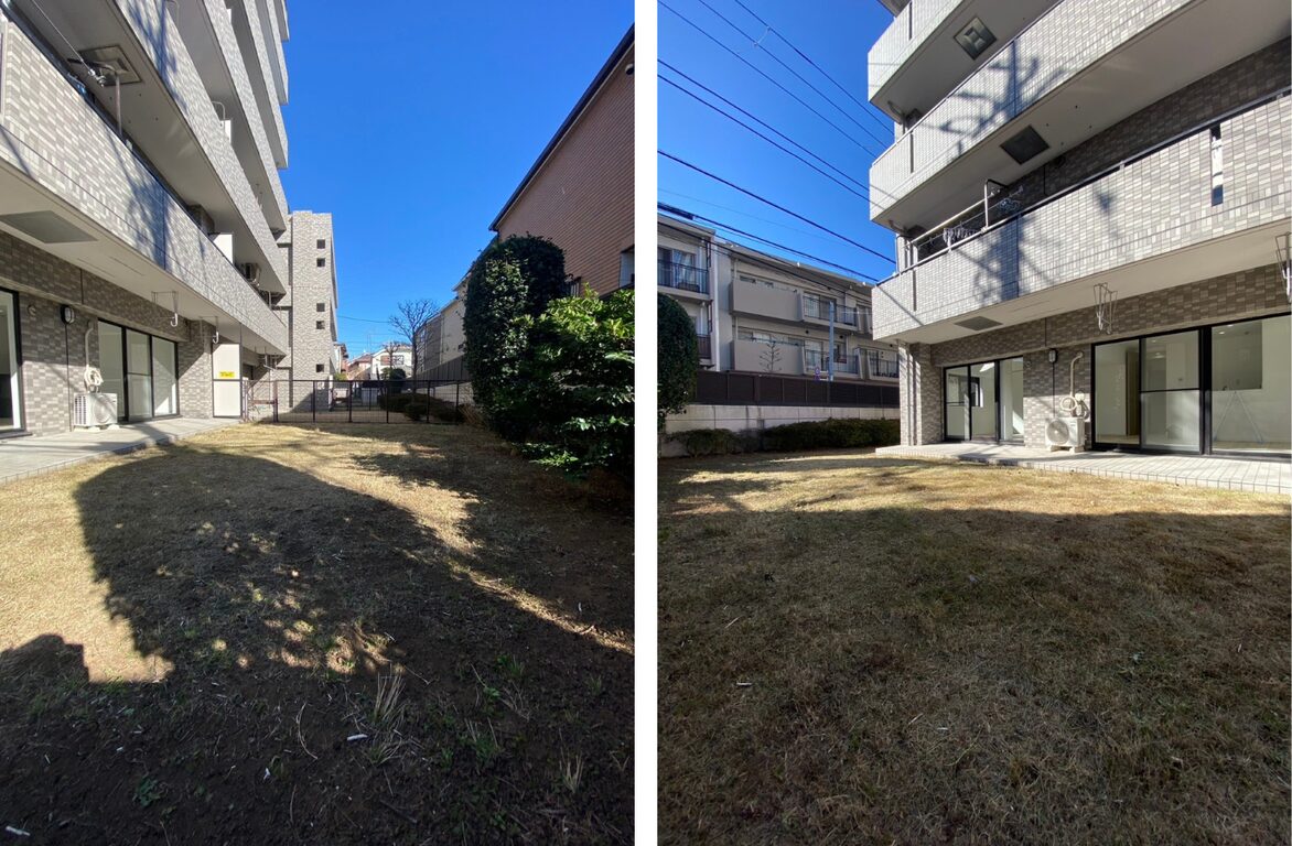 雑草が生い茂っていた庭は、しっかりと手入れを行いました。