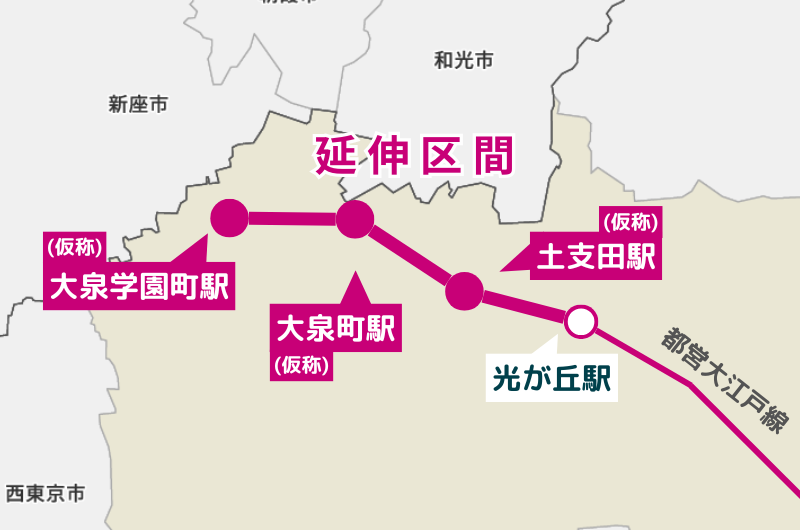 練馬区を通る都営地下鉄大江戸線には延伸計画があり、その中で既存の終着駅である「光が丘駅」から延伸計画が検討されています。