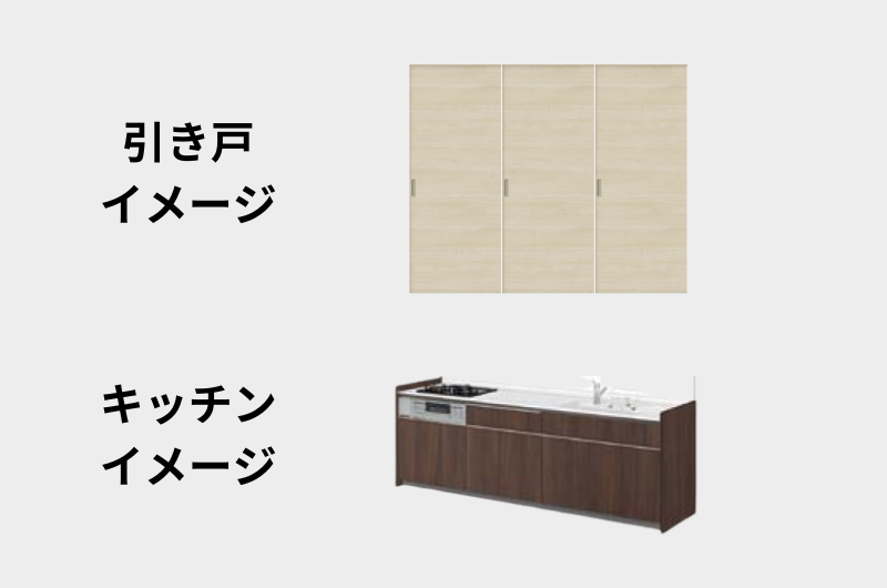 まず、リビング隣の居室の扉は引き戸にして自由に開口ができるようにします。これによって、引き戸を開ければ空間の広がりを作れるようにします。また、キッチンは壁につけずカウンターキッチンを採用することで、開放感が出やすい造りにします。