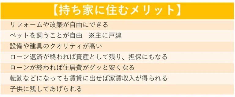 しかし「今その時」のメリットデメリットだけで考えるのではなく将来的な目線で考えてみると、いざ引っ越しが必要となった時に動きやすいとか、将来的のリフォームなどを考える必要が無い精神的な安心というメリットもあります。
