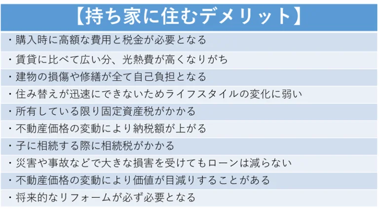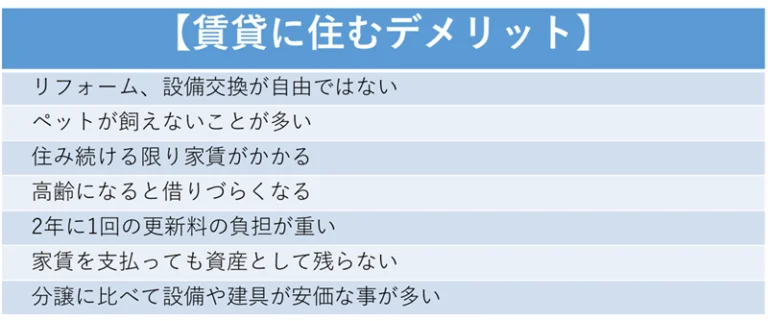いくら家賃を支払い続けても自分のものにならないのは確かにデメリットです。