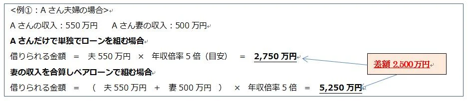 というのも、夫婦が共同でローン契約を行うので、それぞれの収入を合算して融資額を決めるからです。