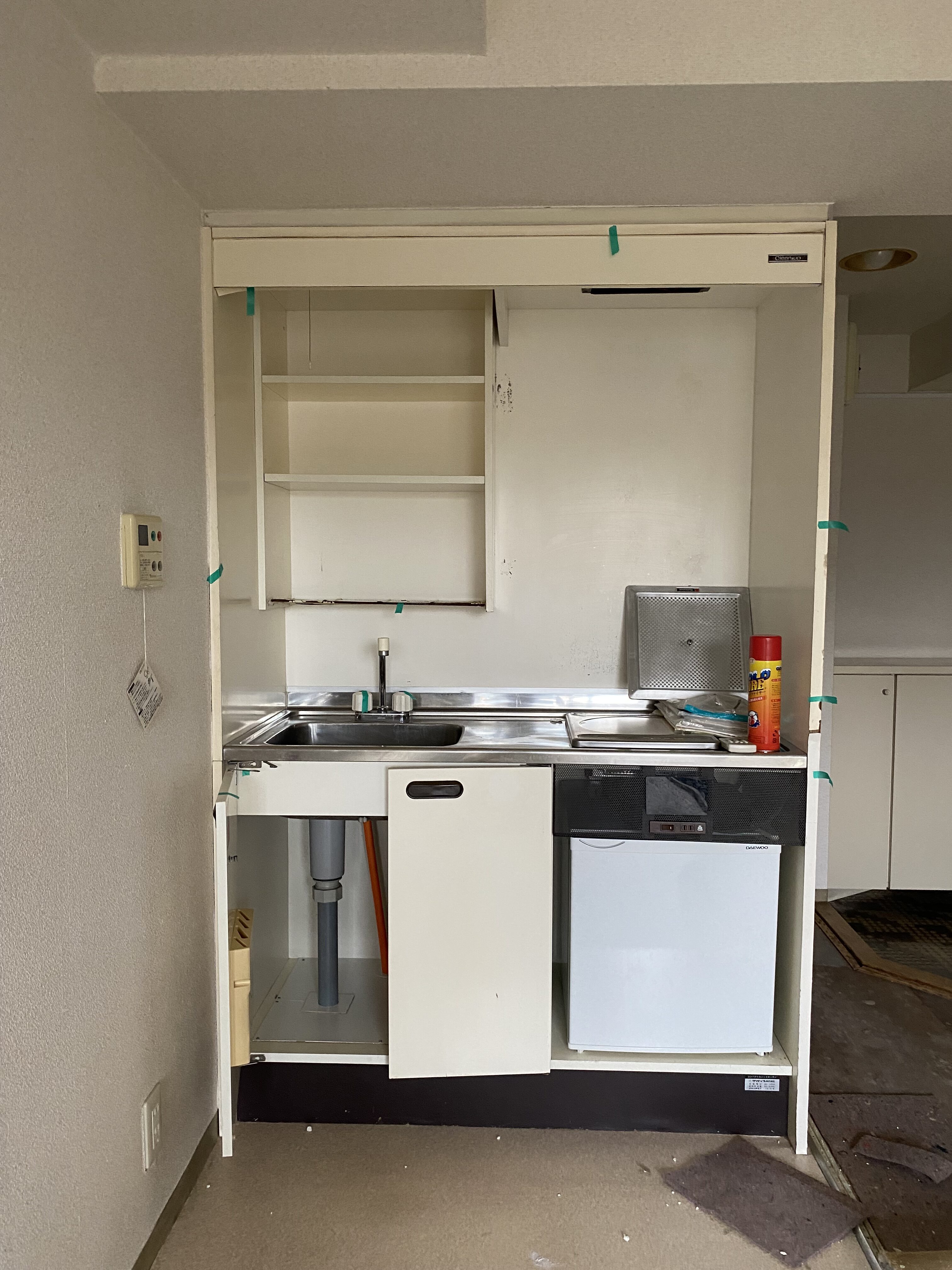 冷蔵庫が組み込まれたミニキッチン