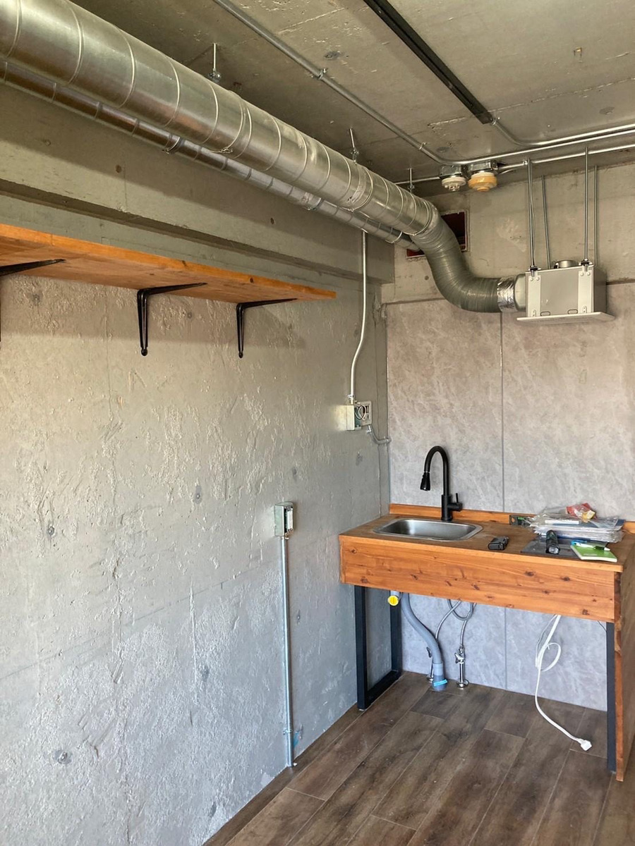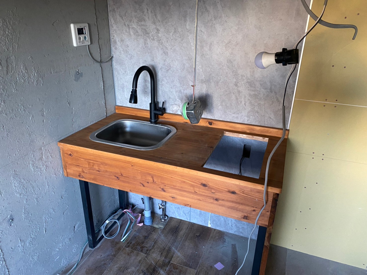 居室部分と同様にアイアン×ウッドのデザインで統一されています。