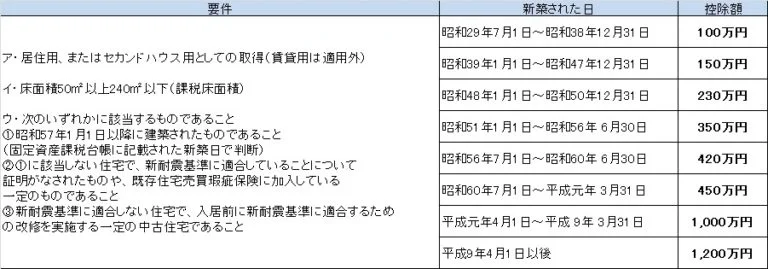 次のアからウのすべての要件を満たす中古住宅は、「耐震基準適合既存住宅」として、住宅の価格から一定額が控除されます。