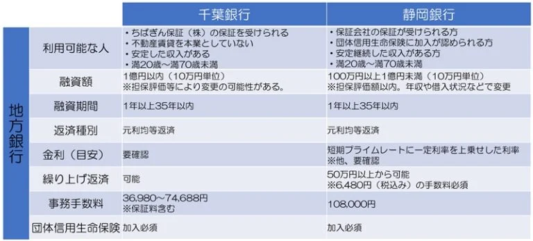 どの金融機関で融資を受けるべきかは、以下のような情報を元に決めると良いでしょう。