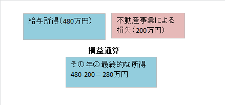 損益通算とは不動産経営によって赤字が出た場合、本業の給与所得から相殺するというものです。
