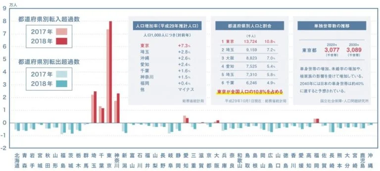 人口増加は7都県のみ!中古ワンルームマンション投資を東京でやる理由