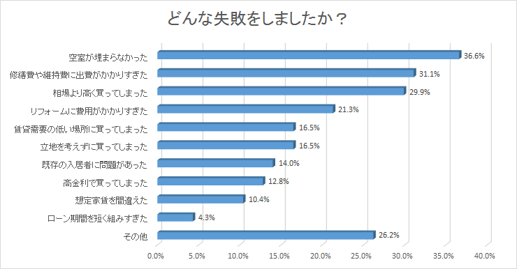 そのうち、失敗した理由として1位は「空室が埋まらなかった」となっています。