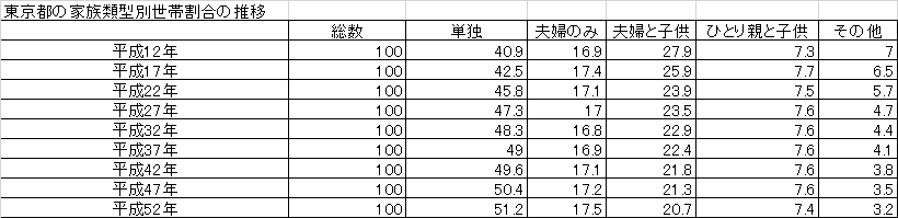 東京都は単身世帯が増え続け、2035年には半数以上が単身世帯となる予測をたてています。