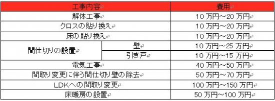 部屋の配置を丸ごと変更してしまうと、それだけ費用が膨らんできてしまいます。