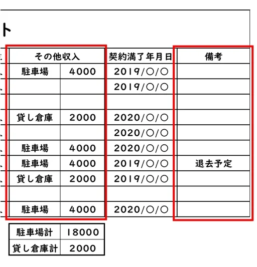 親切なレントロールであれば、備考欄を作って退去予定日を記載してくれています。