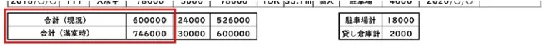 上図ですと「満室時」の収入が74万6000円ですので、年間895万2000円の収入が得られます。