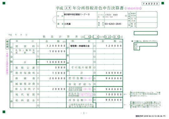 | 作成する書類 | 青色申告決算書 (不動産所得用) 確定申告書B |