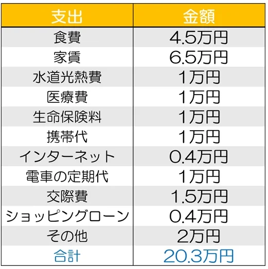 ゆとりある生活のために「35万円-15万円」で20万円足りないです。