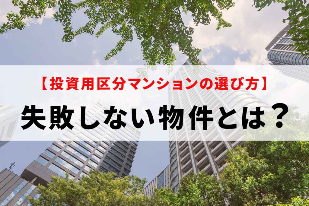 【投資用区分マンションの選び方】不動産投資初心者でも失敗しない物件とは?