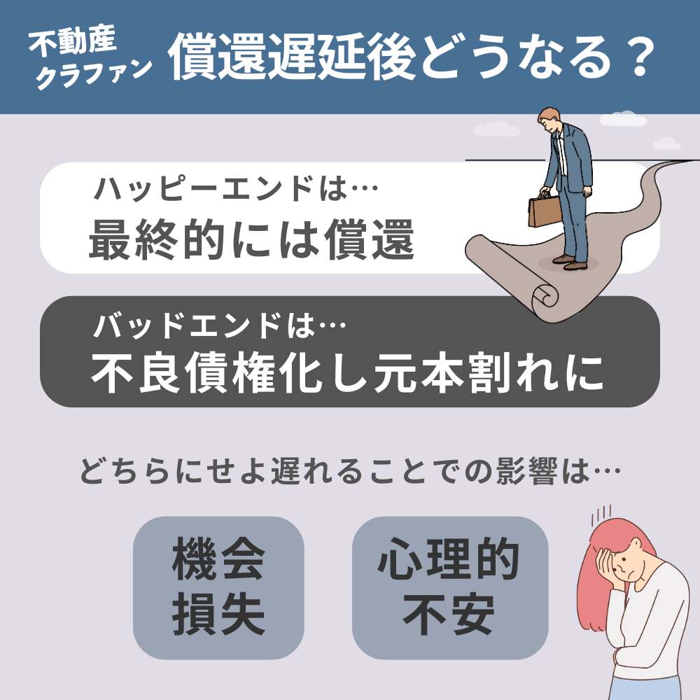 次に、償還遅延が起こった後の結果と、それによる投資家への影響について見ていきましょう。