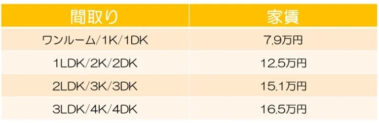 ワンルームマンションの家賃相場をご紹介しましたが、東京のファミリータイプとワンルームの家賃比較も見てみましょう。