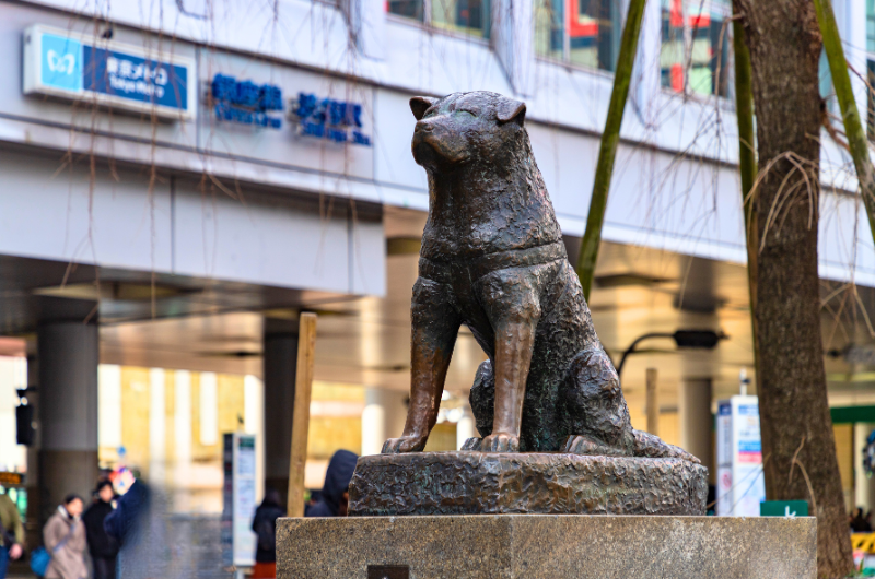 そんな飼い主に忠誠を誓って待ち続ける姿は、人々に感銘を与えました。渋谷駅前のハチ公がいた場所にはハチの銅像が設置され、今でも渋谷のシンボルとして親しまれています。