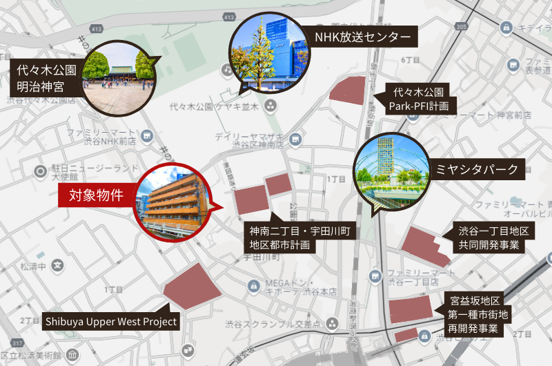 渋谷駅から徒歩8分、渋谷区役所と神南小学校の前という立地が絶妙な位置だと思います。