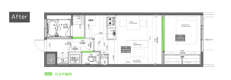 POINT1. 1Rから1Kへ賢く空間を分けて快適に