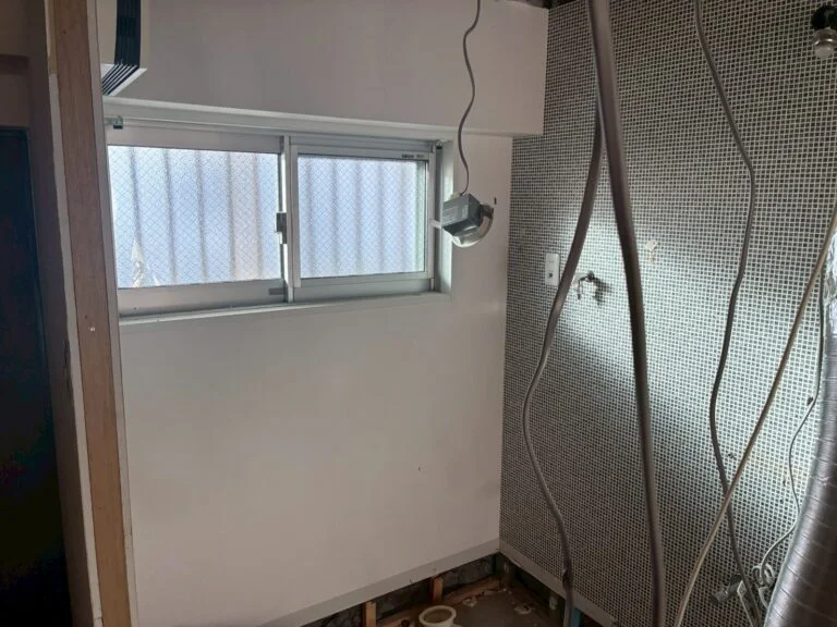 ※写真は解体後の状態。左側の窓が浴室の窓として活用予定で、上部にわずかに壁がかかる想定箇所です。