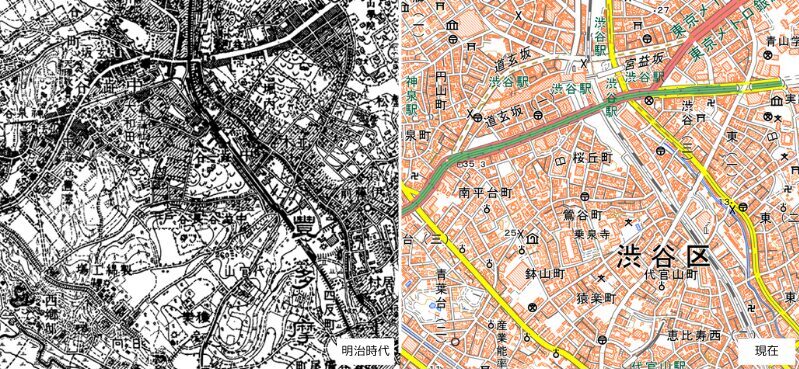 渋谷区の南部は、古くから人が住む谷や台地が入り組んだ土地で、江戸時代には武家屋敷や農村が広がっていました。
