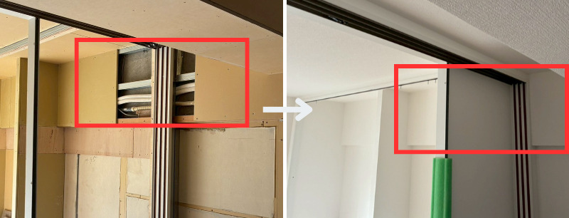 施工会社と相談し、この限られたスペースを活かして配管施工が可能との判断となり、エアコンはLDK側に設置できるよう計画を変更しています。