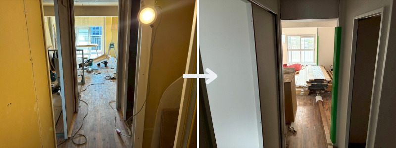 これまでのオープン収納をクローゼットに変更することで、生活感を隠しつつ整理された空間を保てます。