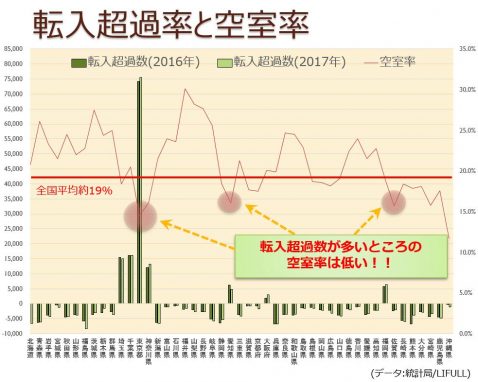 棒グラフが上に伸びている地域は空室率が低いことがお分かり頂けると思います。