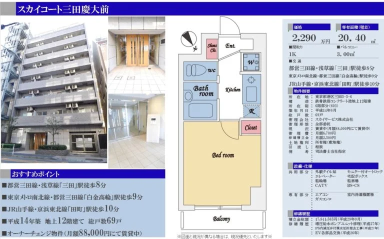 今回ご紹介する事例は「東京都港区 三田駅 徒歩8分」の物件です。