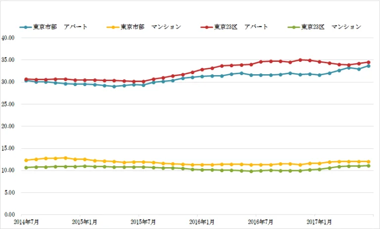 以下のグラフは、LIFULL HOME’S不動産投資の「見える!賃貸経営」に公開されているデータをグラフ化したものです。